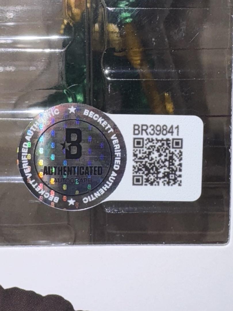Celebrate the DC Universe with this Jason Momoa signed Funko Pop #1301 "Aquaman." Certified authentic by JSA, this collectible showcases the powerful hero in a distinctive, stylized form. Ideal for fans and collectors, it offers a striking display piece with lasting value. Don’t miss the opportunity to own this rare autograph from the actor who embodies the King of Atlantis.