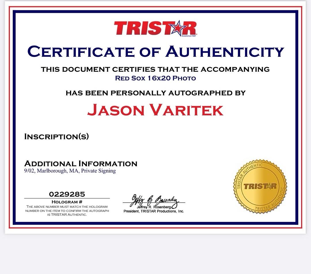 Celebrate Boston Red Sox history with this exclusive 16x20 photo signed by Jason Varitek and Derek Lowe. Featuring authentic autographs and accompanied by a TriStar Certificate of Authenticity, this limited edition collectible (#3 out of 427) is a must-have for passionate fans and serious collectors alike. Display a piece of baseball legacy that captures the spirit and dedication of two iconic players. Secure this rare memorabilia and elevate your collection today.