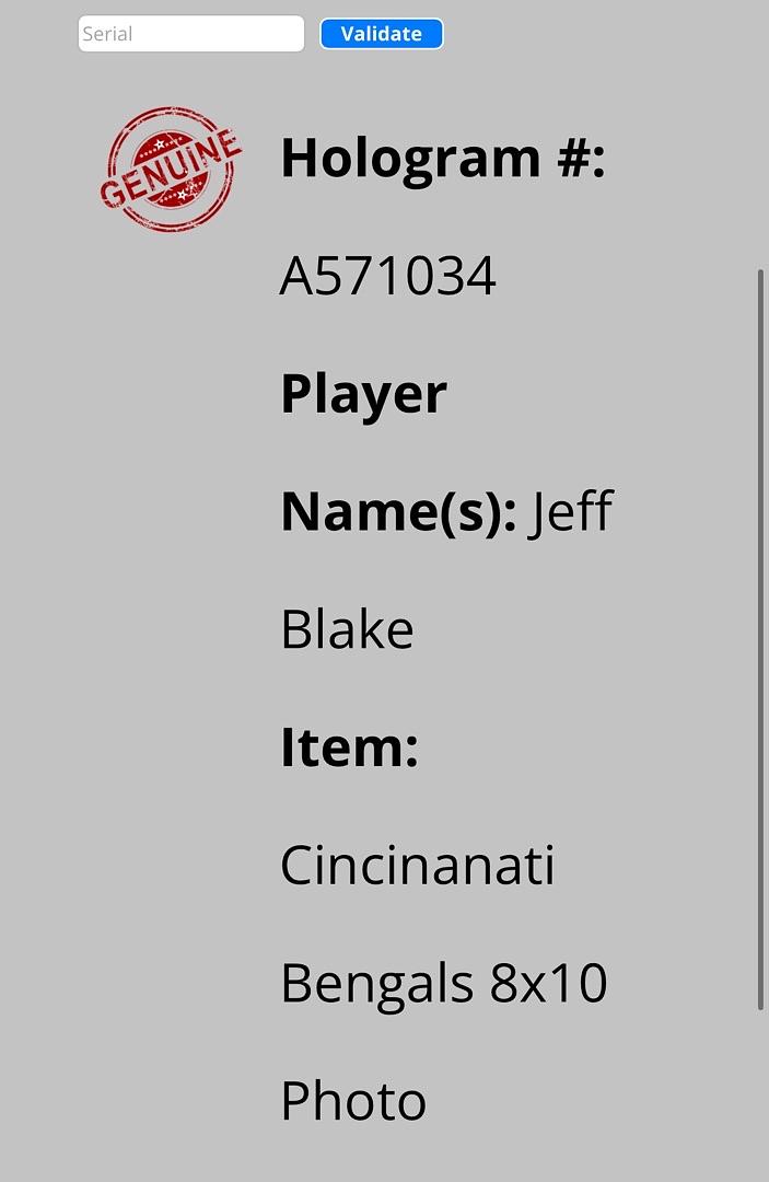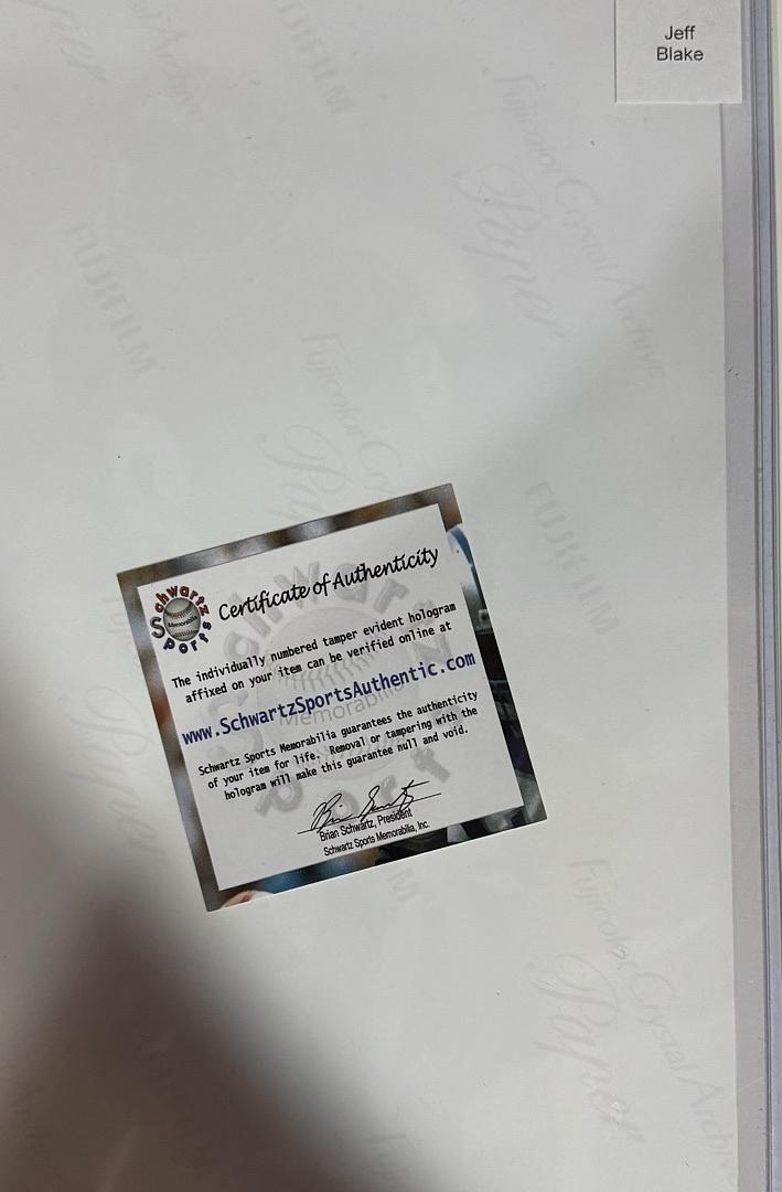 This 8x10 photo signed by Jeff Blake, former Cincinnati Bengals quarterback, comes with a Schwartz Certificate of Authenticity, ensuring its legitimacy. A valuable collectible for football enthusiasts, it honors Blake’s contributions to the Bengals. Perfect for display or investment, this authenticated autograph adds verified provenance and meaningful value to any sports memorabilia collection.