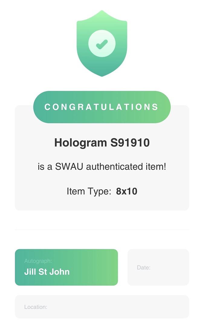 Add a touch of classic Bond glamour to your collection with this signed 8x10 photo of Jill St. John from the James Bond series. Authenticated by SWAU, this collectible captures the elegance and charm of a beloved Bond actress. Perfect for fans and collectors seeking a genuine piece of cinematic history, this signed photo is a must-have tribute to a timeless icon.