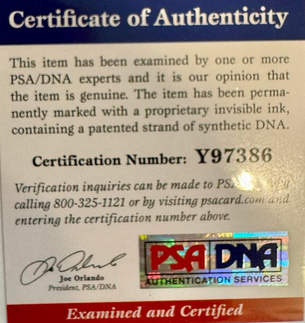 This exceptionally rare golf ball features the authentic signature of Joe Biden, accompanied by a PSA Certificate of Authenticity. A unique collectible for enthusiasts and memorabilia collectors, it offers a tangible connection to the President. Secure this exclusive piece to enhance your collection with a distinguished and verified item.