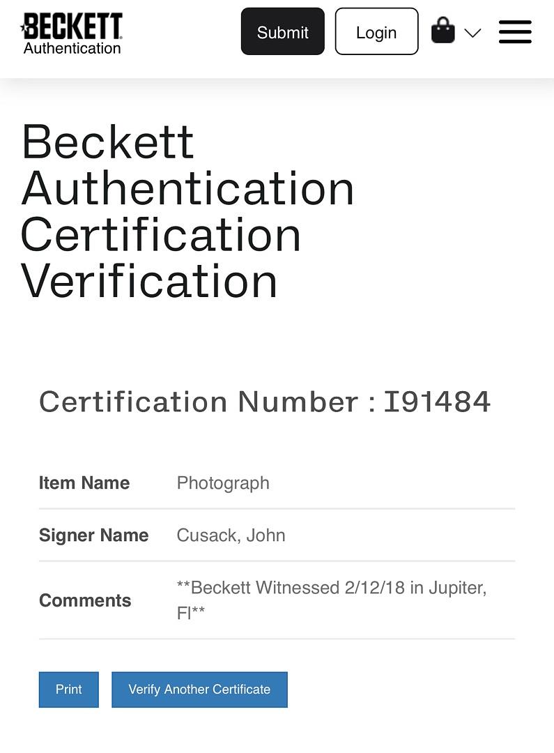 Add a playful touch of romance to your collection with this 8x10 photo of John Cusack from Say Anything, signed and certified by JSA COA. Perfect for fans who love iconic movie moments with a fun twist, this autograph brings charm and nostalgia to your memorabilia. Don’t miss out on this delightful collectible!