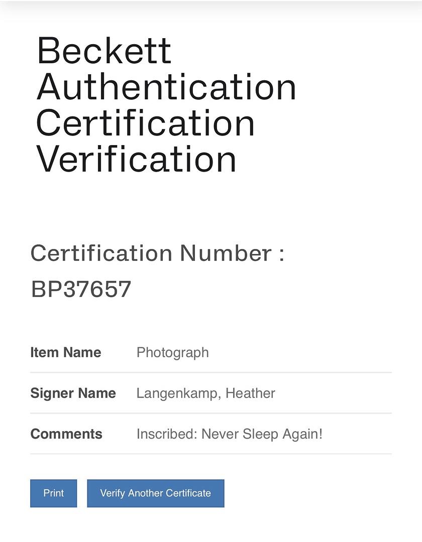 Own a piece of horror cinema history with this authentic 8x10 photograph signed by Heather Langenkamp, the iconic Nancy Thompson from A Nightmare on Elm Street. Each signature is verified and authenticated by Beckett, ensuring complete peace of mind with your investment. Perfect for devoted fans of the classic franchise or serious autograph collectors seeking genuine memorabilia. Display this treasured collectible proudly and celebrate one of horror's most memorable performances.