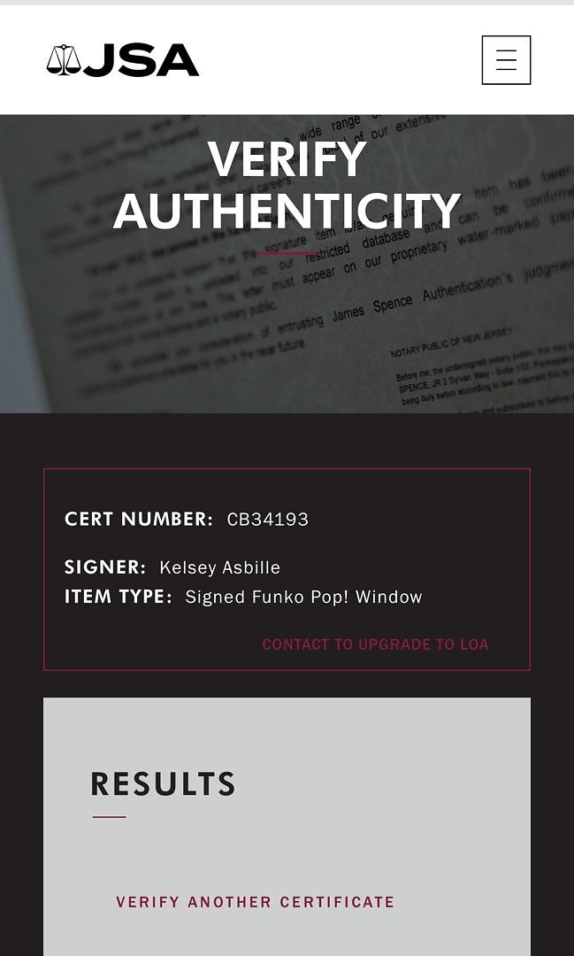 Own a unique piece of Yellowstone memorabilia with this Kelsey Asbille signed Funko Pop #1364 "Monica Dutton." Certified authentic by JSA with a Certificate of Authenticity, this collectible features a genuine autograph that adds exceptional value. Perfect for fans and collectors, it’s a rare and special addition that celebrates a beloved character from the hit series. Don’t miss your chance to own this exclusive and authenticated treasure.