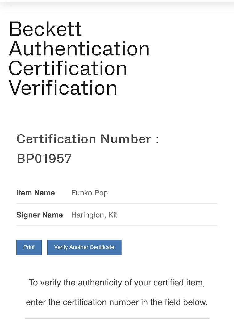 Own a piece of Game of Thrones history with this Kit Harington signed Funko Pop #80 "Jon Snow." Authenticated by Beckett with a Certificate of Authenticity, this collectible features a genuine autograph that adds exceptional value. Perfect for fans and collectors, it’s a unique addition that celebrates one of the series’ most iconic characters. Don’t miss the chance to own this rare and authenticated treasure.