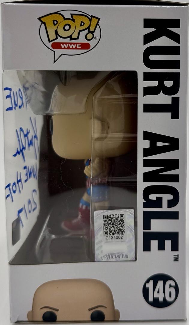 Celebrate a piece of wrestling history with this Kurt Angle signed Funko #146. Each collectible comes with an Official Pix Certificate of Authenticity, ensuring its genuine signature. Perfect for fans and collectors, this signed Funko offers a unique chance to own an exclusive memento from the wrestling legend. Don’t miss out on adding this rare treasure to your collection.