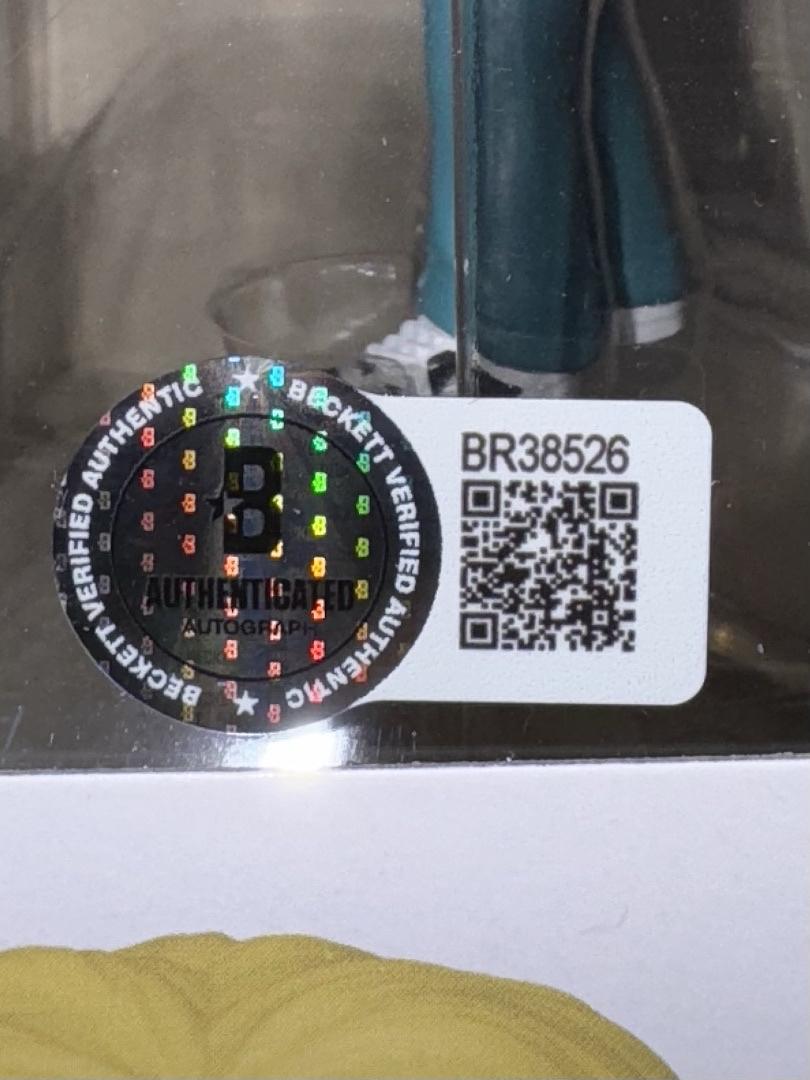 Celebrate an iconic character with this Laura Dern signed Funko Pop #1214 "Dr. Ellie Sattler." Authenticated by Beckett with a Certificate of Authenticity, this collectible features a genuine autograph that enhances its value. Perfect for fans and collectors, it’s a rare and special piece honoring a beloved role. Don’t miss the opportunity to own this exclusive and authenticated treasure.
