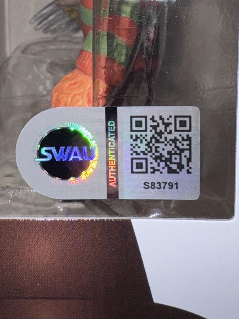 Add a chilling collectible to your horror collection with this Lisa Wilcox signed Funko Pop #02 featuring Freddy Krueger from Nightmare on Elm Street. Certified authentic by SWAU, this rare autograph pairs a legendary horror icon with a genuine signature, making it a must-have for fans and collectors. Celebrate the legacy of this classic franchise with a unique signed Funko Pop that stands out in any display. Don’t miss the chance to own this exclusive piece of horror memorabilia.