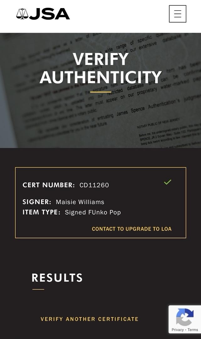 Own a truly rare collectible with this Maisie Williams signed Funko Pop #89 Arya Stark from Game of Thrones, authenticated by JSA. This exclusive autograph is a must-have for dedicated fans and collectors seeking a unique piece that celebrates one of the series’ most iconic characters. Don’t miss the opportunity to add this exceptional signed Funko Pop to your collection.