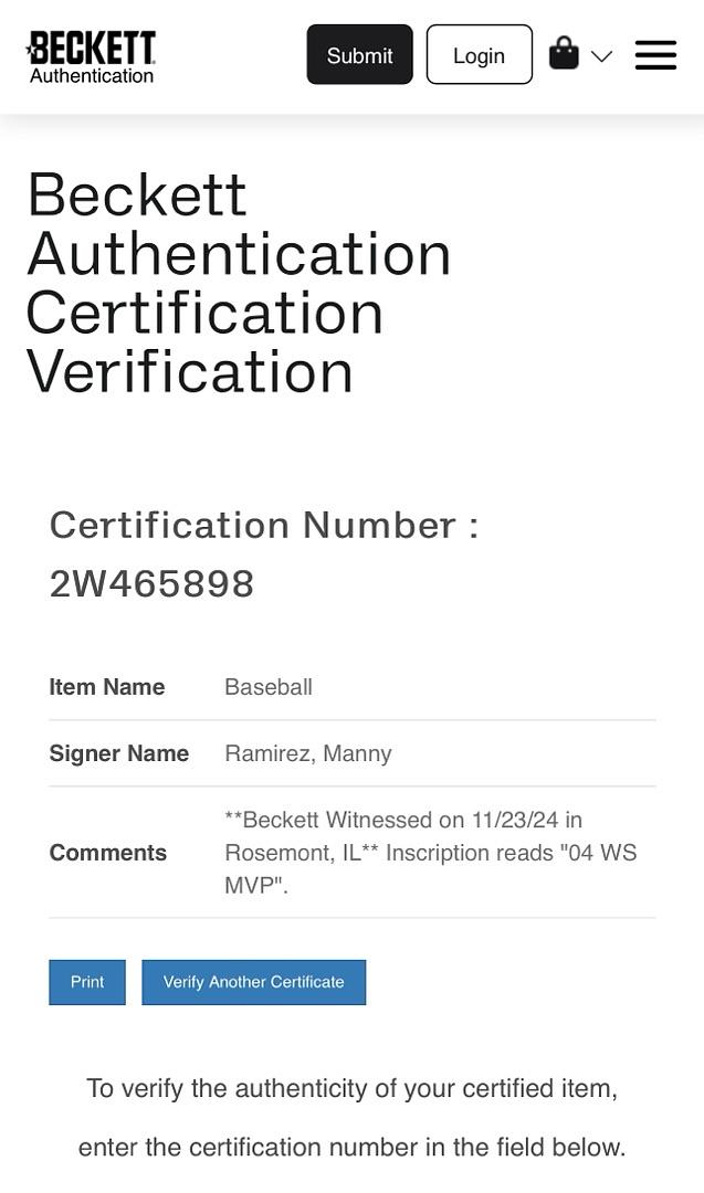 Celebrate a historic moment with this Manny Ramirez autographed Rawlings Official 2004 World Series baseball, featuring the special "MVP" inscription. Accompanied by a Beckett Certificate of Authenticity, this authenticated collectible honors Ramirez’s outstanding performance and makes a prized addition for any sports memorabilia collector. Secure this exclusive signed baseball and own a piece of baseball greatness today.