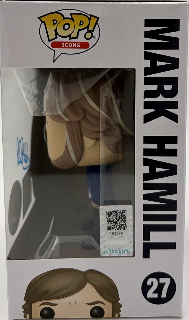 Own a piece of Star Wars history with this authenticated Mark Hamill signed Funko Pop #27. The legendary actor's signature graces this exclusive collectible, making it a must-have for devoted fans and serious collectors alike. Each item comes with an Official Pix Certificate of Authenticity, guaranteeing the signature's legitimacy and protecting your investment. This rare combination of pop culture nostalgia and genuine celebrity memorabilia elevates any collection from ordinary to extraordinary. Perfect for display or as a treasured gift for the ultimate Star Wars enthusiast.