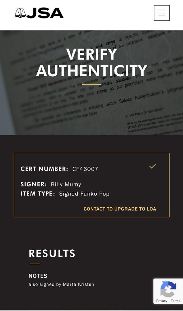 Marta Kristen & Billy Mumy signed Funko #92 (Lost in Space) - JSA and Beckett COA