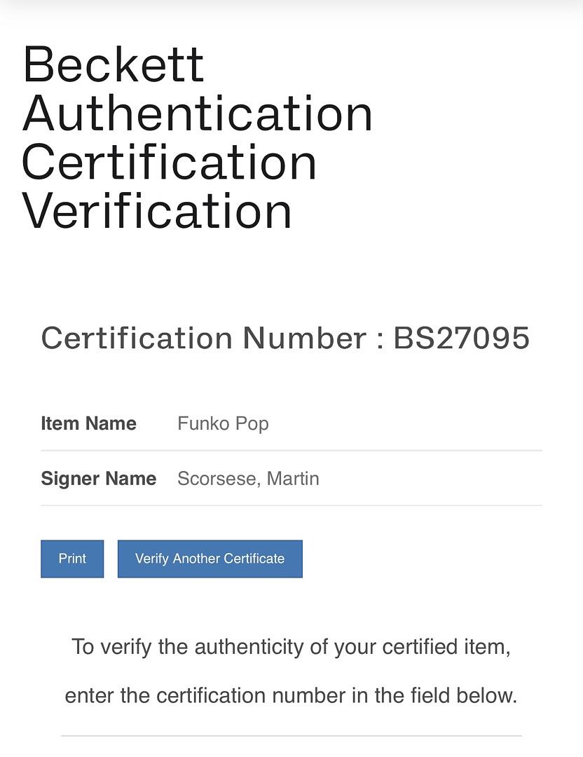 Celebrate Hollywood greatness with this Martin Scorsese signed Funko Pop #1862 "Sam Rothstein" from Casino. Authenticated by Beckett with a Certificate of Authenticity, this collectible features a genuine autograph from the legendary filmmaker. Perfect for fans and collectors, it’s a rare and valuable addition that honors a true icon of cinema. Don’t miss your chance to own this exclusive and authenticated treasure.