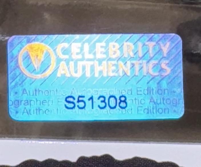 This Mel Gibson signed Funko Pop #1469 "Mad Max," featuring a bold blue ink autograph, is a highly sought-after collectible certified by Celebrity Authentics. Perfect for enthusiasts and collectors, it provides a rare opportunity to own an authentic piece connected to the iconic actor and his legendary role. Add this exclusive memorabilia to your collection and celebrate a cinematic classic with genuine flair.