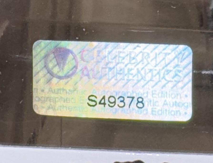 This Mel Gibson signed Funko Pop #1469 "Mad Max," featuring a striking red ink autograph, is a rare collectible certified by Celebrity Authentics. It offers fans and collectors a unique chance to own an authentic piece connected to the legendary actor and his iconic role. Elevate your memorabilia collection with this bold and exclusive item.