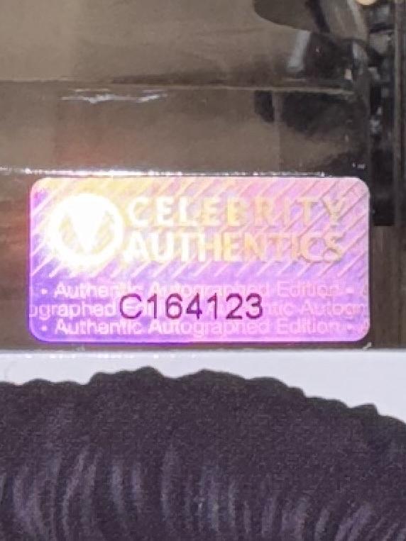 This rare Funko Pop #1469 of "Mad Max" is personally signed by Mel Gibson in striking yellow ink, making it a standout collectible. Certified by Celebrity Authentics, this piece offers fans an exceptional opportunity to own a unique memorabilia item directly connected to the legendary actor and his iconic role. Ideal for collectors seeking a vibrant and authentic addition to their collection.