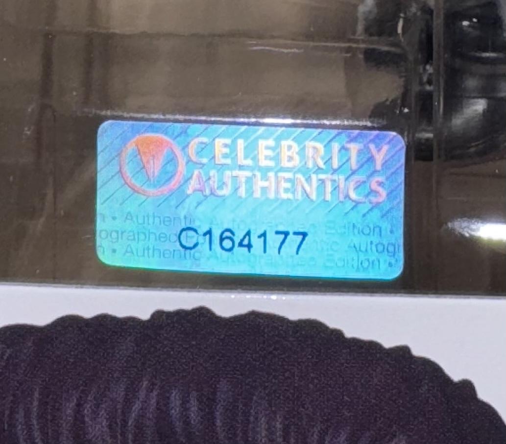 This Mel Gibson signed Funko Pop #1469 "Mad Max," featuring a bold yellow ink autograph, is a standout collectible certified by Celebrity Authentics. Perfect for fans and collectors, it offers a rare opportunity to own an authentic piece connected to the legendary actor and his iconic role. Add this unique item to your collection and celebrate a cinematic classic with genuine memorabilia.