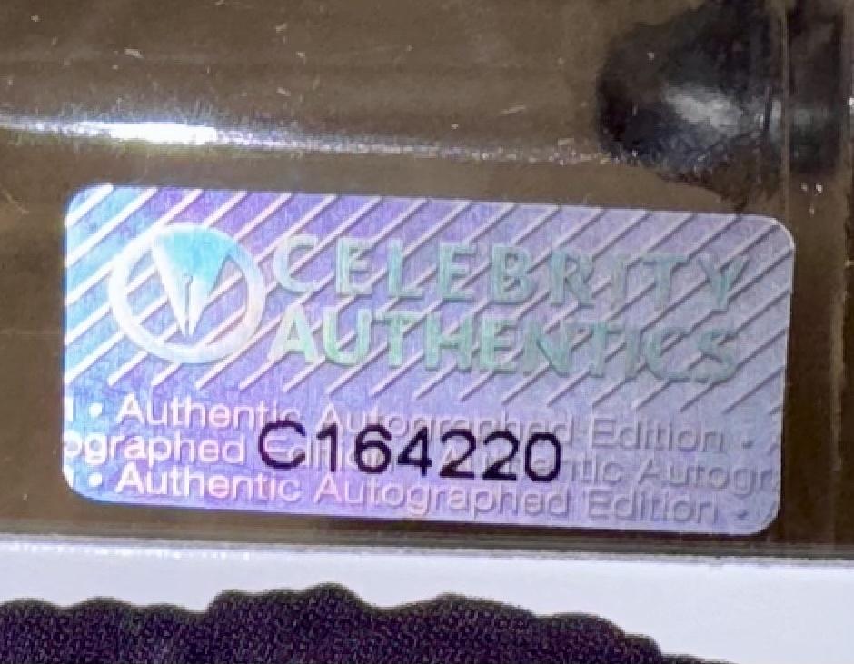 Add a legendary touch to your collection with this Mel Gibson signed Funko Pop #1469 from "Mad Max," featuring a distinctive yellow ink autograph. Authenticated by Celebrity Authentics, this collectible guarantees authenticity and rarity. Perfect for fans of the iconic film and serious collectors, it offers a unique way to celebrate a cinematic classic. Don’t miss the opportunity to own this exclusive piece of movie memorabilia.