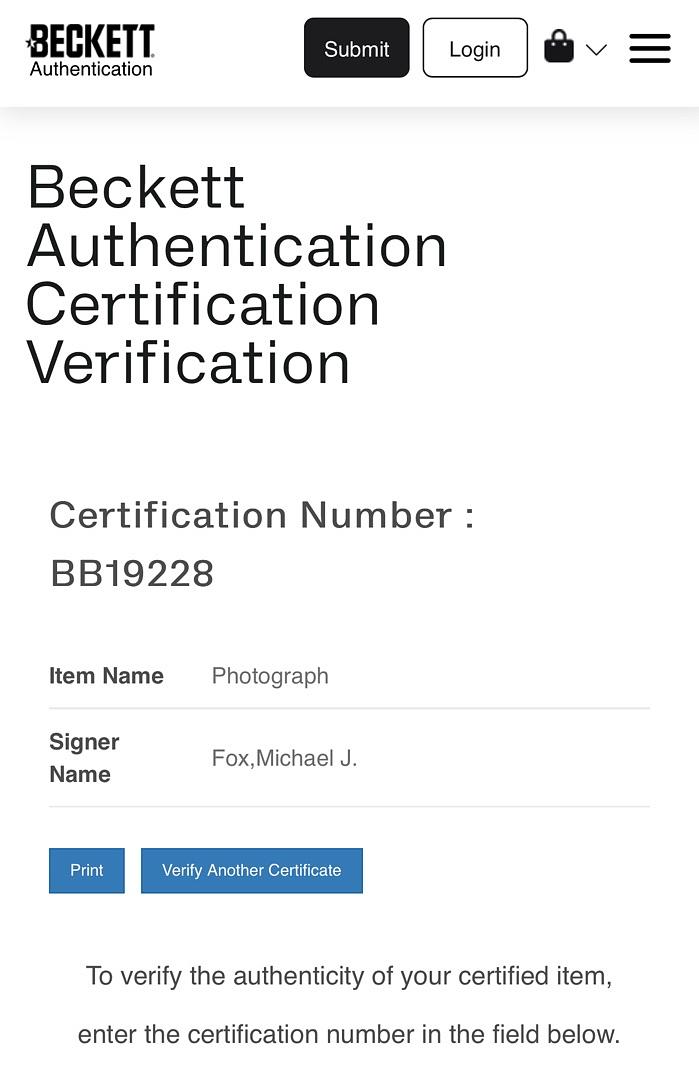 Hop into the DeLorean with this 8x10 photo signed by Michael J. Fox, the iconic face of Back to the Future. Beckett certified for authenticity, this playful piece is a must-have for fans eager to add a blast from the past to their collection. Time travel never looked so fun!