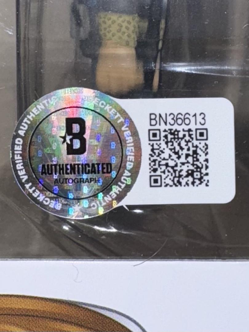 Enhance your Back to the Future collection with this Michael J. Fox signed Funko Pop #958 featuring Marty McFly with glasses, signed in distinctive blue ink. Authenticated by Beckett Certificate of Authenticity, this collectible offers a rare and genuine autograph from the iconic actor. Perfect for fans and collectors, it captures Marty’s memorable look while adding exceptional value and authenticity to your display. Don’t miss the chance to own this unique piece of cinematic history.