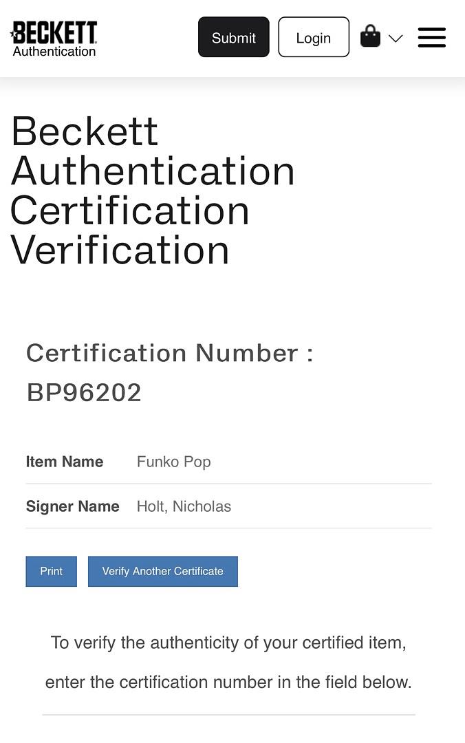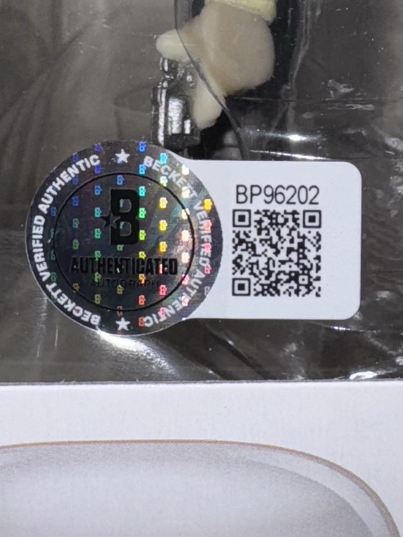 Add a powerful collectible to your Mad Max Fury Road collection with this Nicholas Hoult signed Funko Pop #512 featuring Nux. Certified authentic by Beckett, this piece guarantees a genuine autograph, making it a must-have for fans and collectors seeking a unique and verified tribute to this iconic character.