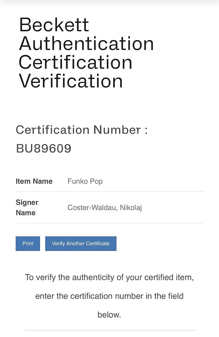 Nicolaj Costner Waldau signed Funko #35 (Game of Thrones) - Beckett COA *RARE*