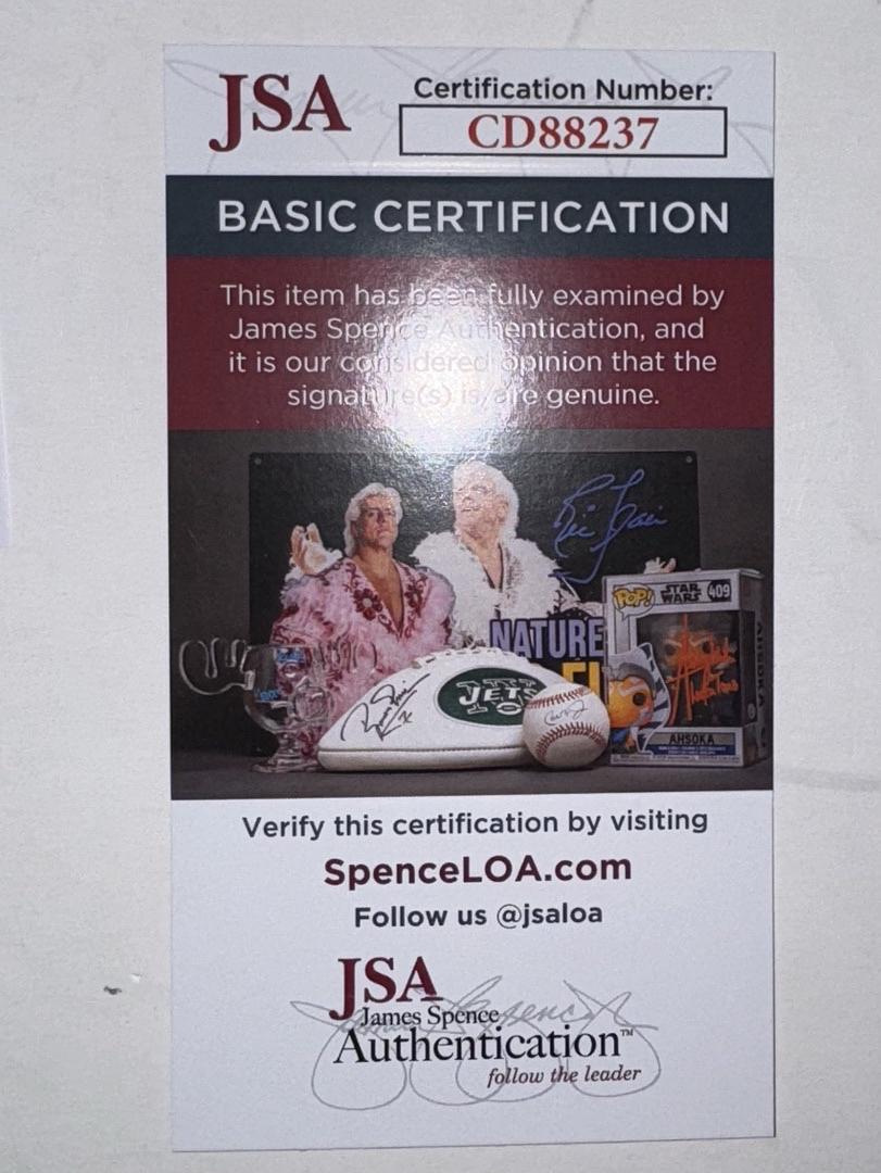 Enhance your Lord of the Rings collection with this Orlando Bloom signed Funko Pop #1577 "Legolas." Authenticated by JSA Certificate of Authenticity, this collectible captures the elegance and bravery of the iconic elf. Perfect for fans and collectors, it’s a rare and valuable addition that brings Middle-earth magic to your display.