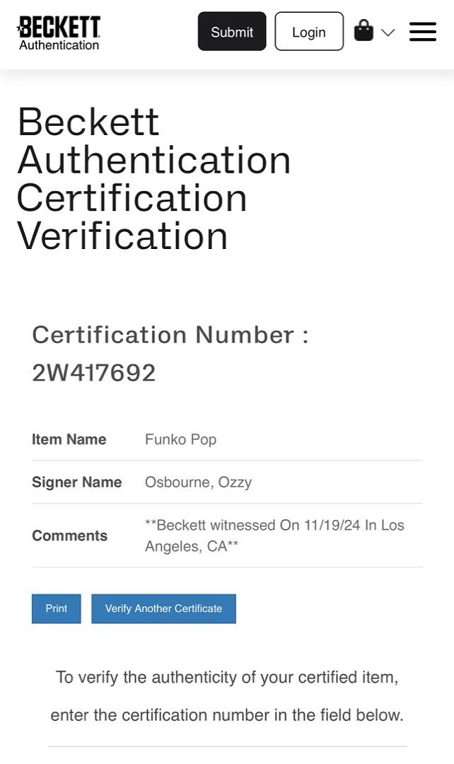 Own a unique collectible with this Ozzy Osbourne signed Funko Pop #356, featuring a distinctive purple ink autograph. Certified authentic by Beckett, this piece offers genuine value for fans and collectors alike. Perfect for showcasing your admiration for the legendary rock icon, it adds rarity and authenticity to any collection. Don’t miss the chance to own this exclusive and memorable keepsake.