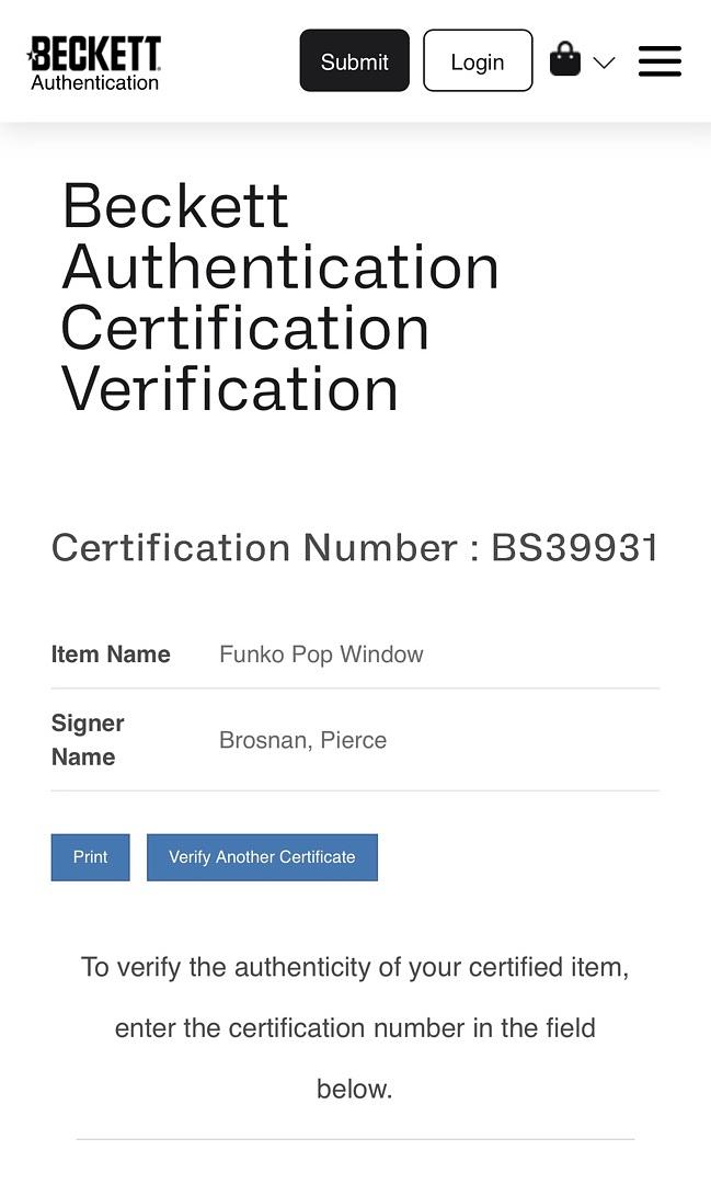 Pierce Brosnan Signed Funko Pop #518 "James Bond" (007) - Beckett COA