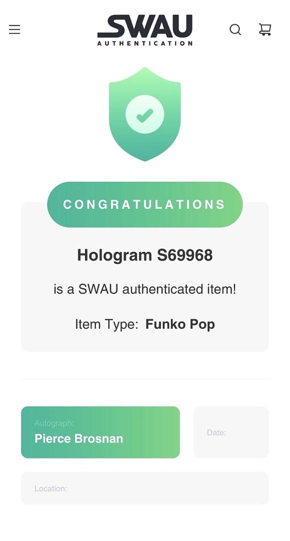 Own a distinguished collectible with this Pierce Brosnan signed Funko Pop #693 "James Bond" (007). Authenticated by SWAU COA, this piece captures the iconic charm and sophistication of the legendary spy, making it a must-have for fans and collectors seeking a genuine and valuable addition to their collection.