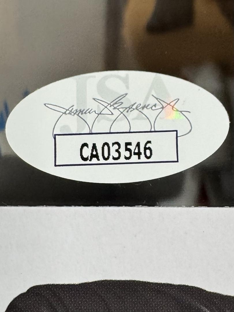 Celebrate the King of Rock with this Priscilla Presley signed Funko Pop #10 featuring Elvis Presley from the Elvis Pure Gold series. Signed with a stunning blue paint pen and authenticated by JSA, this collectible is a rare and valuable addition for fans and collectors alike. Add a unique and elegant piece of music history to your collection with this exclusive signed Funko Pop. Don’t miss your chance to own this extraordinary memorabilia.