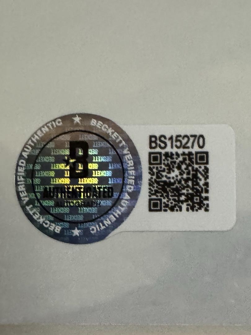 This 8x10 photo signed by Ray Bourque, legendary Boston Bruins defenseman, is authenticated with a Beckett Certificate of Authenticity. A prized collectible for hockey fans, it captures the legacy of one of the NHL’s greatest players. Ideal for display or investment, this signed photo offers verified provenance and adds significant value to any sports memorabilia collection.