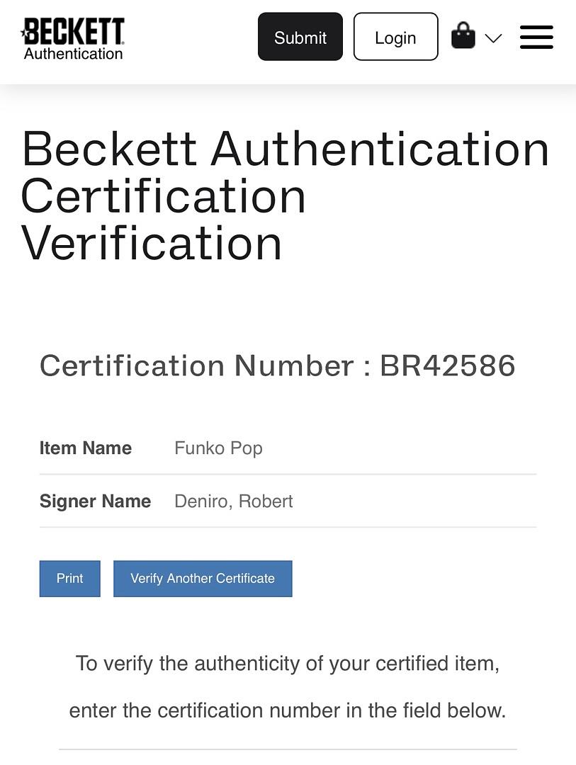 Celebrate a legendary performance with this Robert De Niro signed Funko Pop #1525 "Vito Corleone" from The Godfather Part II. This collectible honors one of cinema’s most iconic characters, making it a prized addition for any fan or collector. Although authentication is pending, this piece promises to be a standout treasure that captures the essence of De Niro’s unforgettable role. Don’t miss the opportunity to own a unique part of film history.