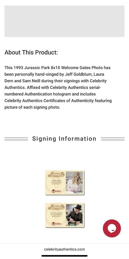 Celebrate your love for Jurassic World with this exclusive 8x10 photo signed by stars Sam Neill, Laura Dern, and Jeff Goldblum. Authenticated by Celebrity Authentics, this collectible captures the essence of iconic performances, making it a must-have for any fan or memorabilia collector. Add a touch of Hollywood history to your collection with this striking piece that showcases the legends behind the adventure.