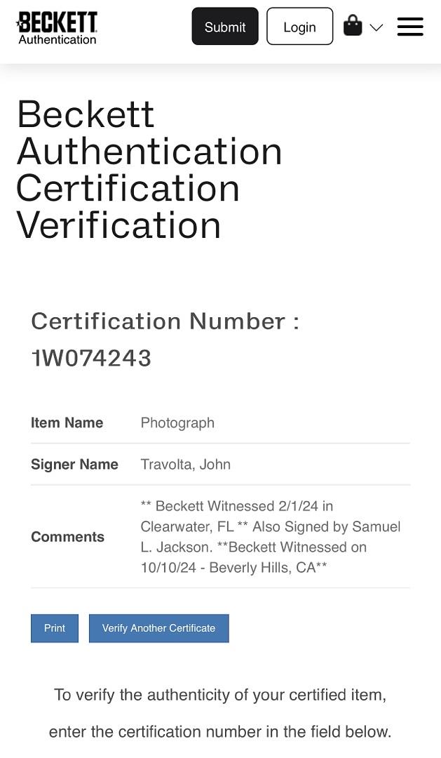 Samuel L. Jackson, Harvey Keitel & John Travolta signed 11x14 - Beckett & JSA COA