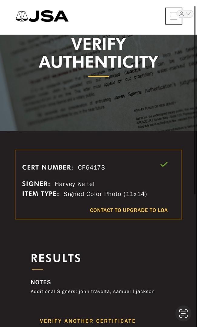 Celebrate cinematic history with this 11x14 photo signed by Samuel L. Jackson, Harvey Keitel, and John Travolta, stars of the iconic film "Pulp Fiction." Each signature is authenticated with Beckett and JSA certificates, guaranteeing authenticity and quality. This rare collectible is a must-have for fans and serious collectors, bringing a legendary piece of Hollywood directly to your display. Elevate your collection with this exclusive, authenticated memorabilia.