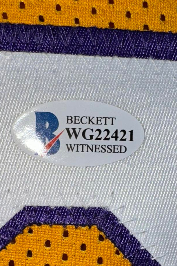 Celebrate the legendary Shaquille O'Neal with this signed custom gold Lakers jersey. Accompanied by a Beckett Certificate of Authenticity, this collectible honors O'Neal’s dominant career and lasting impact on the game. A must-have for fans and collectors seeking a unique piece that pays tribute to a true Lakers icon.