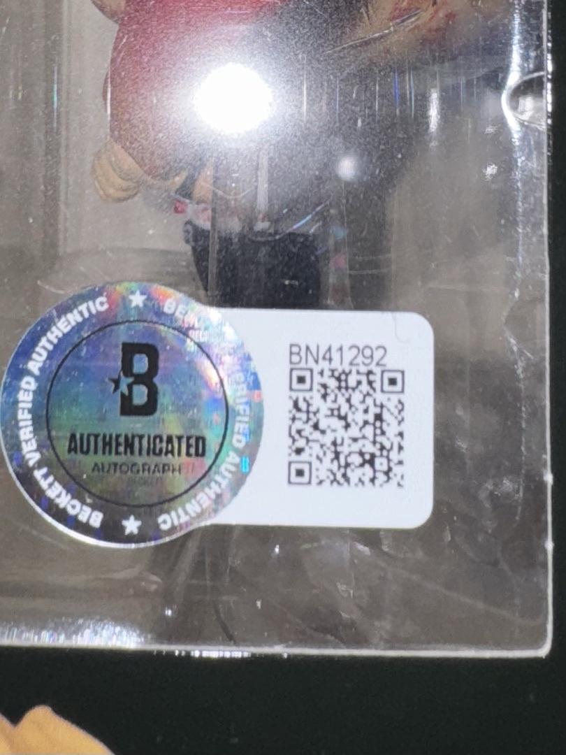 Own a piece of cult classic horror comedy with this Simon Pegg signed Funko Pop #996 "Shaun" from Shaun of the Dead. Verified by Beckett with a Certificate of Authenticity, this collectible captures the charm of Pegg’s iconic character in a fun, stylized form. Perfect for fans and collectors, it adds unique value and a standout display to your collection. Don’t miss the chance to own this rare autograph from one of the genre’s most beloved actors.