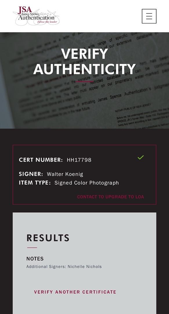 Own a stellar piece of sci-fi history with this 8x10 photo signed by Star Trek legends Walter Koenig, George Takei, Nichelle Nichols, and William Shatner. Certified by JSA, this authentic collectible is perfect for fans and collectors eager to add an iconic autograph from the original crew to their collection. Don’t miss your chance to boldly own this rare treasure.