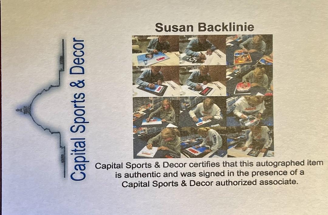 Make a splash with this playful 11x17 photo of Susan Backlinie from Jaws, signed and certified by Capital City COA. Featuring special inscriptions celebrating the 50th anniversary and her role as Chrissie, the first victim, this collectible is a fin-tastic addition for any fan. Don’t let this rare treasure swim away—add it to your collection today!