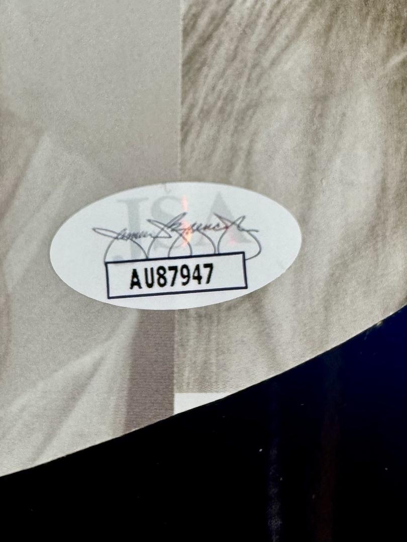 Show off your Swiftie pride with this vibrant blue and black guitar, signed by Taylor Swift herself! With JSA COA guaranteeing its authenticity, this playful collectible is perfect for fans who want to own a unique piece of music history. Add a splash of color and star power to your collection today!