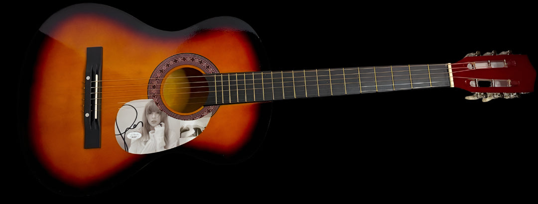 Celebrate your Swiftie fandom with this eye-catching black and blonde guitar, personally signed by Taylor Swift! Certified authentic with JSA COA, this playful collectible is a standout addition to any music lover’s treasure trove. Bring home a piece of Taylor’s magic and let your passion for her music shine bright!