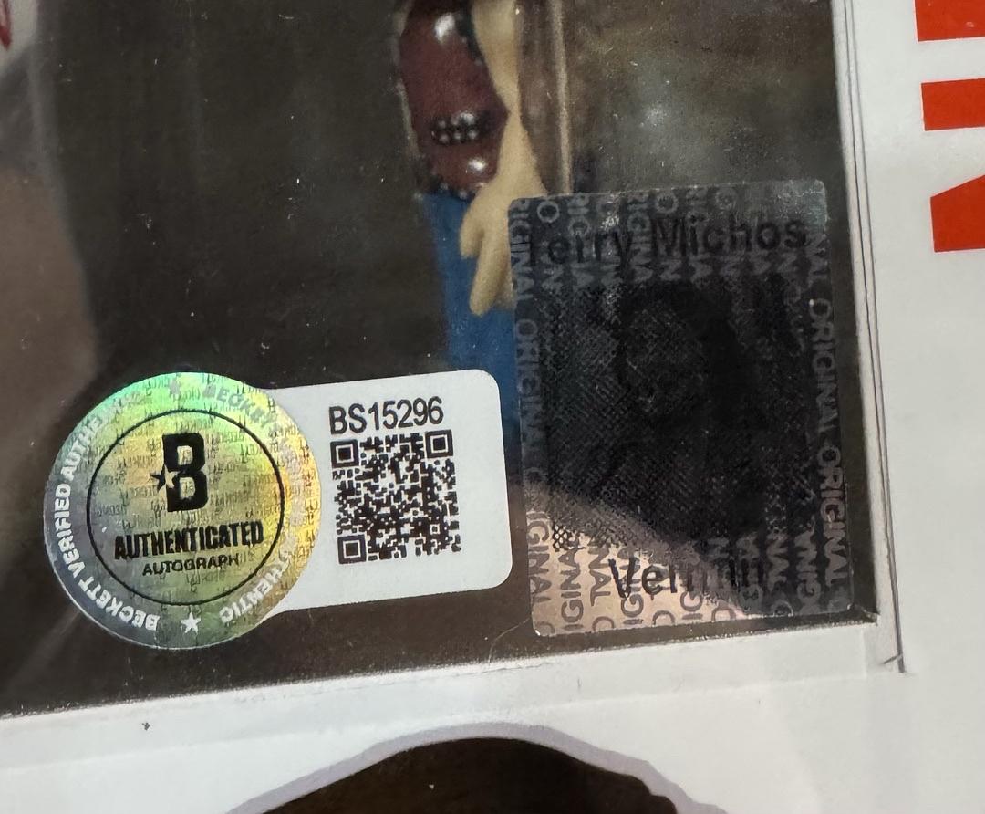 Own a unique collectible with this Terry Michos signed custom Funko Pop #870 "Vermin" from The Warriors. Custom-made and authenticated by Beckett, this piece combines exclusive craftsmanship with verified autograph authenticity. Perfect for dedicated fans and collectors, it offers a rare opportunity to showcase a one-of-a-kind, signed tribute to a cult classic character.