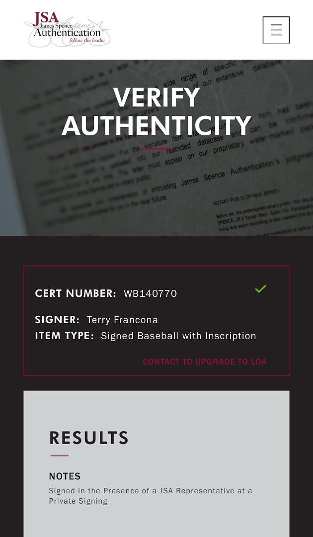 Own a prized collectible with this Terry "Tito" Francona autographed Rawlings Official ROMLB baseball, accompanied by a JSA Certificate of Authenticity. This authenticated baseball offers a unique connection to the celebrated manager, making it a valuable addition for sports fans and collectors alike. Celebrate the legacy of a baseball great with this exclusive signed keepsake. Secure this rare piece today.