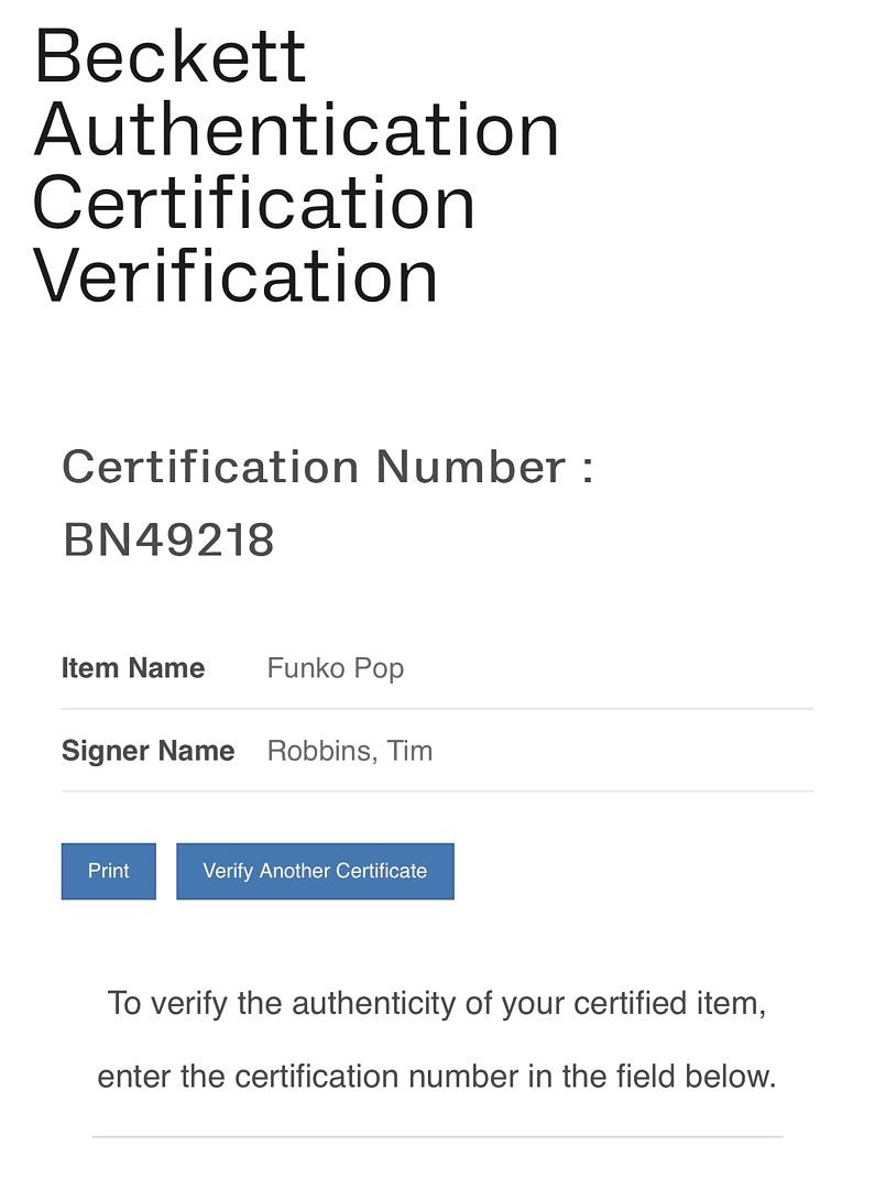 Tim Robbins Signed Funko Pop #1735 "Andy Dufresne" (Shawshank Redemption) - Beckett COA #01
