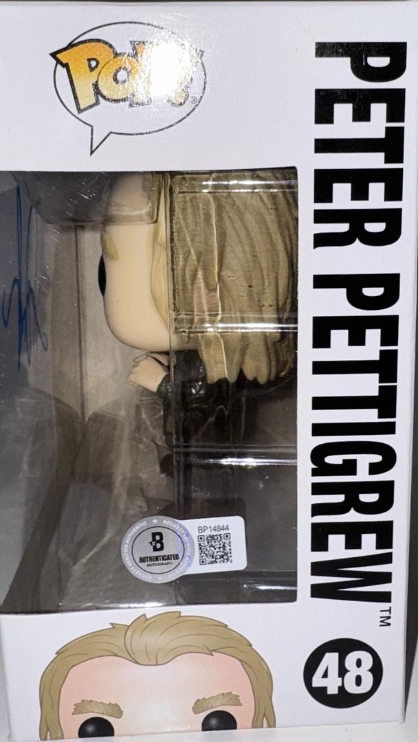 Enhance your Harry Potter collection with this Timothy Spall signed Funko Pop #48 "Peter Pettigrew." Authenticated by Beckett with a Certificate of Authenticity, this collectible features a genuine autograph that adds unique value. Perfect for fans and collectors, it’s a rare piece that celebrates one of the series’ most intriguing characters. Don’t miss the chance to own this exclusive and authenticated treasure.