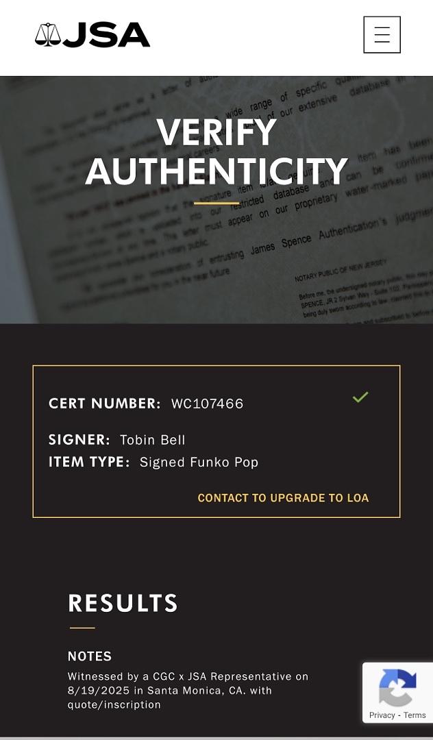 Capture a piece of horror history with this Tobin Bell "Jigsaw" signed Funko Pop #1820 from Saw. Featuring the chilling quote "I want to play a game!" and authenticated by a JSA Certificate of Authenticity, this collectible is a must-have for any fan. Its unique signature and official verification ensure lasting value and authenticity, making it a standout addition to your collection or an unforgettable gift. Don’t miss your chance to own a rare treasure from one of horror’s most iconic villains.