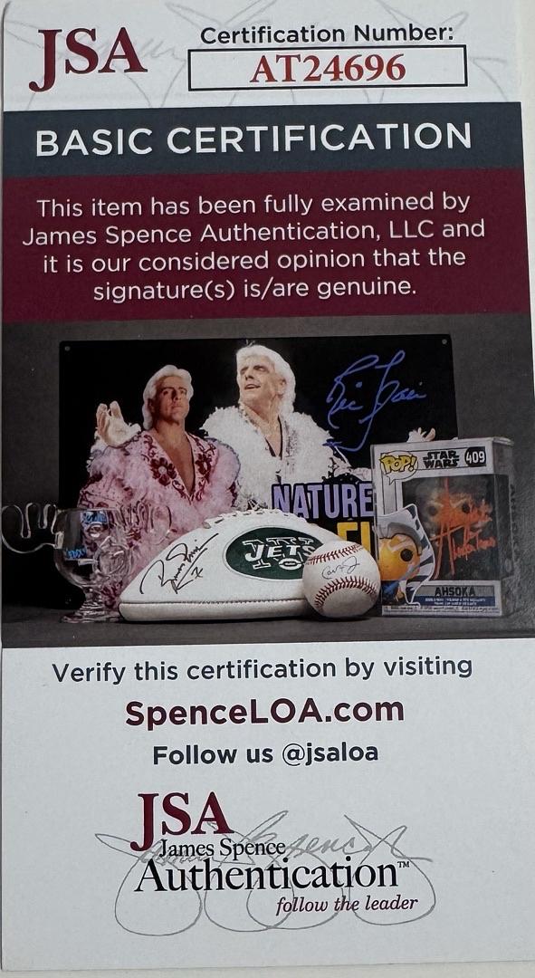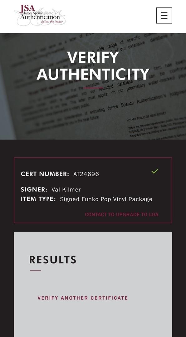 Celebrate eight decades of Batman with this Val Kilmer signed Funko Pop #289, commemorating Batman's 80th anniversary. Authenticated by JSA with a Certificate of Authenticity, this special edition collectible combines iconic superhero appeal with a genuine autograph. A must-have for Batman fans and collectors, it adds unique value and distinction to any collection. Secure this rare tribute today.
