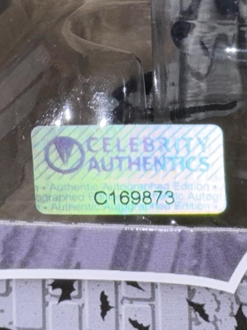 Discover a rare treasure with this Val Kilmer signed Funko Pop #41 from the Batman Art Series. This limited edition collectible, authenticated by Celebrity Authentics, captures the essence of Kilmer’s iconic portrayal of Batman. Perfect for serious collectors and fans, it offers a unique blend of artistic design and genuine celebrity autograph. Elevate your collection with this exclusive, hard-to-find piece that celebrates a legendary superhero legacy.