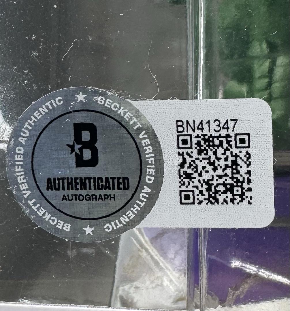 Enhance your Spider-Man collection with this Willem Dafoe signed Funko Pop #1168 Green Goblin, authenticated by Beckett Certificate of Authenticity. This genuine autograph is a must-have for fans and collectors seeking an exclusive piece celebrating one of the franchise’s most iconic villains. Don’t miss the chance to own this authentic signed collectible and elevate your memorabilia.
